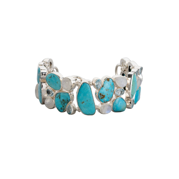 Nerina Turquoise, Blue Topaz and Moonstone Bracelet, Sterling Silver